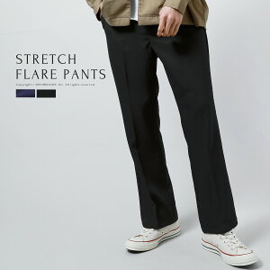 フレアパンツ メンズ スラックス テーパード シューカット カジュアル センタープレス Tr素材 ストレッチ 伸縮性 シンプル 無地 ストリート イージーウエス ロッキーモンロー Rocky Monroe Magaseek