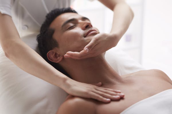 メンズフェイシャルマッサージケア 。 マッサージ を受けているような.